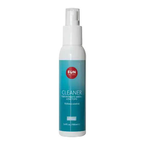 ANTIBACTERIAL SPRAY CLEANER When you get down and dirty, cleanup is easy! Just spray this antibacterial, antifungal, germ-fighting sex toy cleaner directly onto your toy, and wipe it down. Specially formulated to be safe and gentle on toys and skin alike, FUN FACTORY CLEANER is a fantastic body-friendly alternative to regular household soaps. Just spray it on your toy before or after use and wipe it down with a clean cloth or paper towel. Of course, if you’ve had the kind of session that ends with lube everywhere, soap and water might be more expedient, but when a quick clean is all you need, our CLEANER is a great option. Better yet, you can use it from the comfort of your bed! Is it safe for my body? Sure is! Our sex toy cleaning spray is designed so that you can clean your toy with it just before using it, with no issue at all.