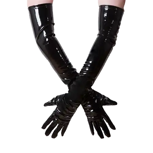 The ultimate in fetish fashion glamour, these sexy long opera gloves, are in glossy black, red, or white PVC. Available in four sizes to accommodate from him to her, according to hand size.