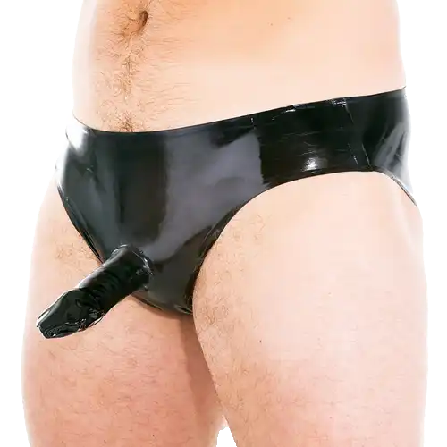 Go commando, kind of, in these naughty men’s glued rubber pants with stitched sheath. The snug rubber sleeve will intensify every sensation and heighten his pleasure.